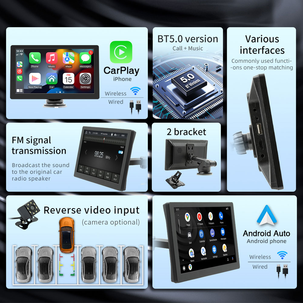 Свързва се безжично към вашия смартфон чрез Bluetooth, елиминирайки необходимостта от кабели или допълнителни адаптери. Освен това преносимият CarPlay / Android Auto дисплей може лесно да се монтира на таблото във всяка кола. Също така той разполага със система за захранване, която гарантира, че устройството остава заредено по време на употреба.