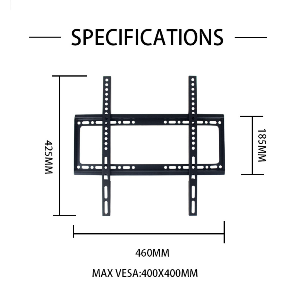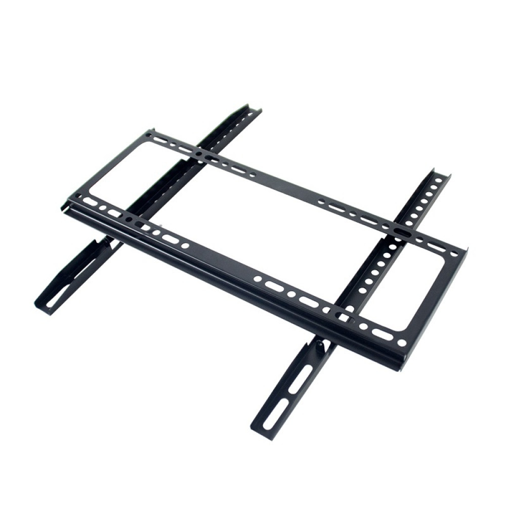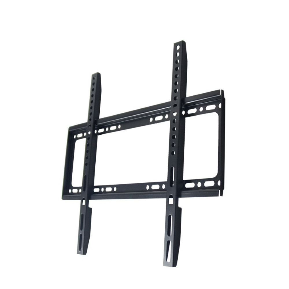 Фиксирана стойка за телевизор за монтаж на стена, подходяща за екрани до 60 инча. Компактна и здрава конструкция в черен цвят, осигуряваща лесен монтаж и стабилно закрепване.