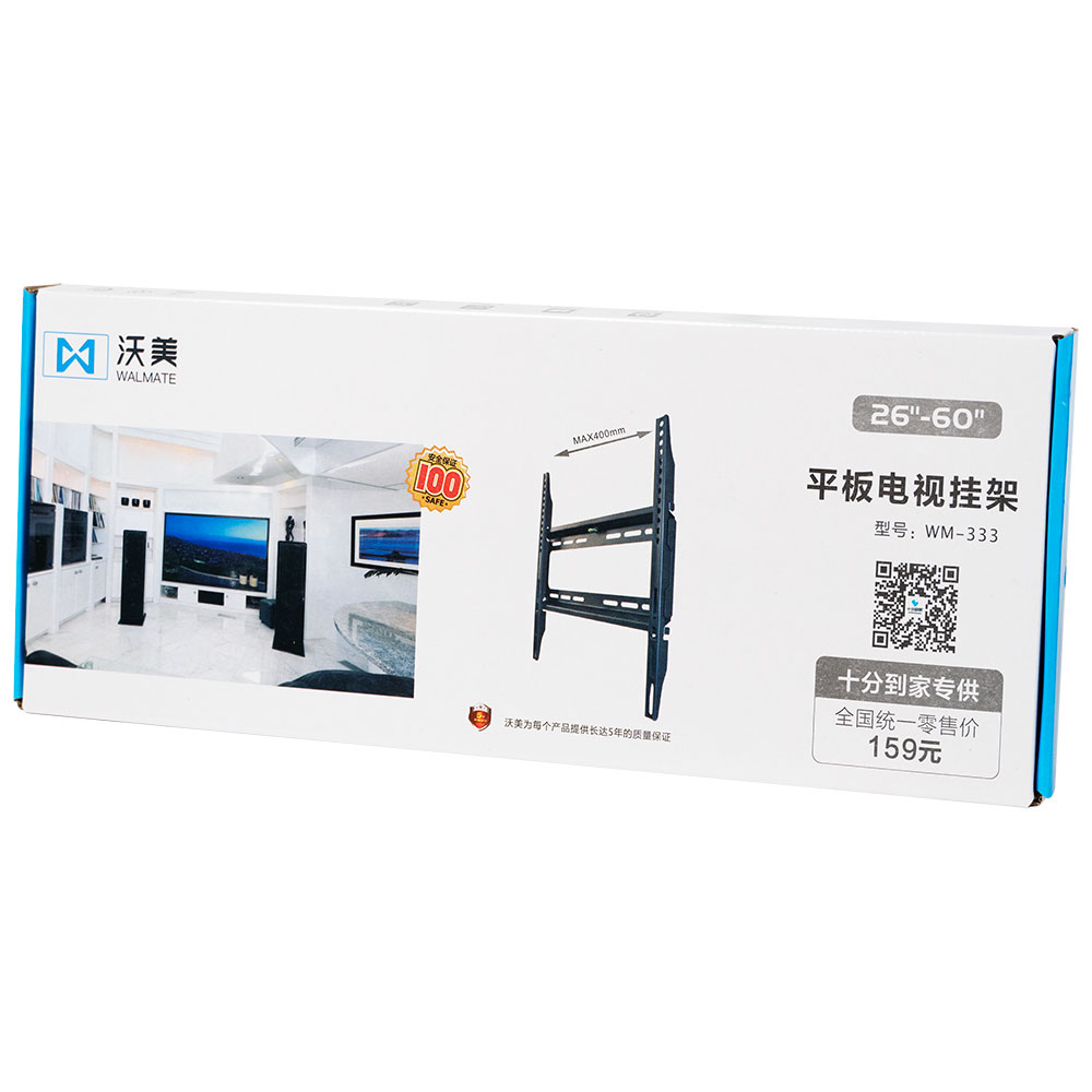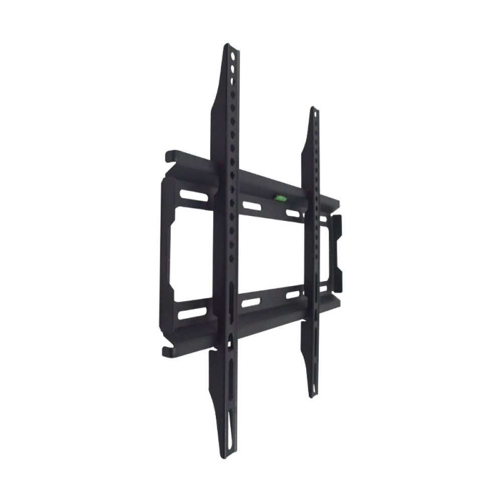 Фиксирана стойка за телевизор за монтаж на стена, подходяща за екрани до 60 инча. Компактна и здрава конструкция в черен цвят, осигуряваща лесен монтаж и стабилно закрепване.