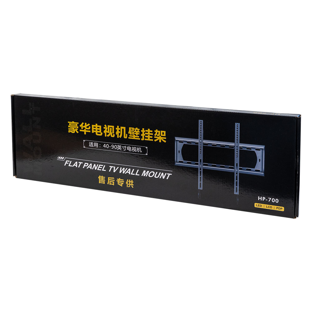 Фиксирана стойка за телевизор за монтаж на стена, подходяща за екрани до 75 инча. Компактна и здрава конструкция в черен цвят, осигуряваща лесен монтаж и стабилно закрепване.