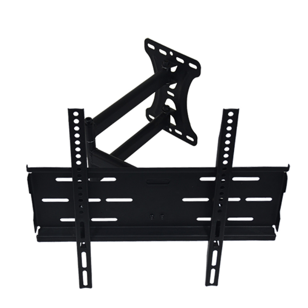 Стойка за телевизор за монтаж на стена, с подвижно рамо, подходяща за екрани до 55 инча. Позволява регулиране на позицията за оптимален ъгъл на гледане. Здрава конструкция в черен цвят, лесна за монтаж и стабилна при употреба.
