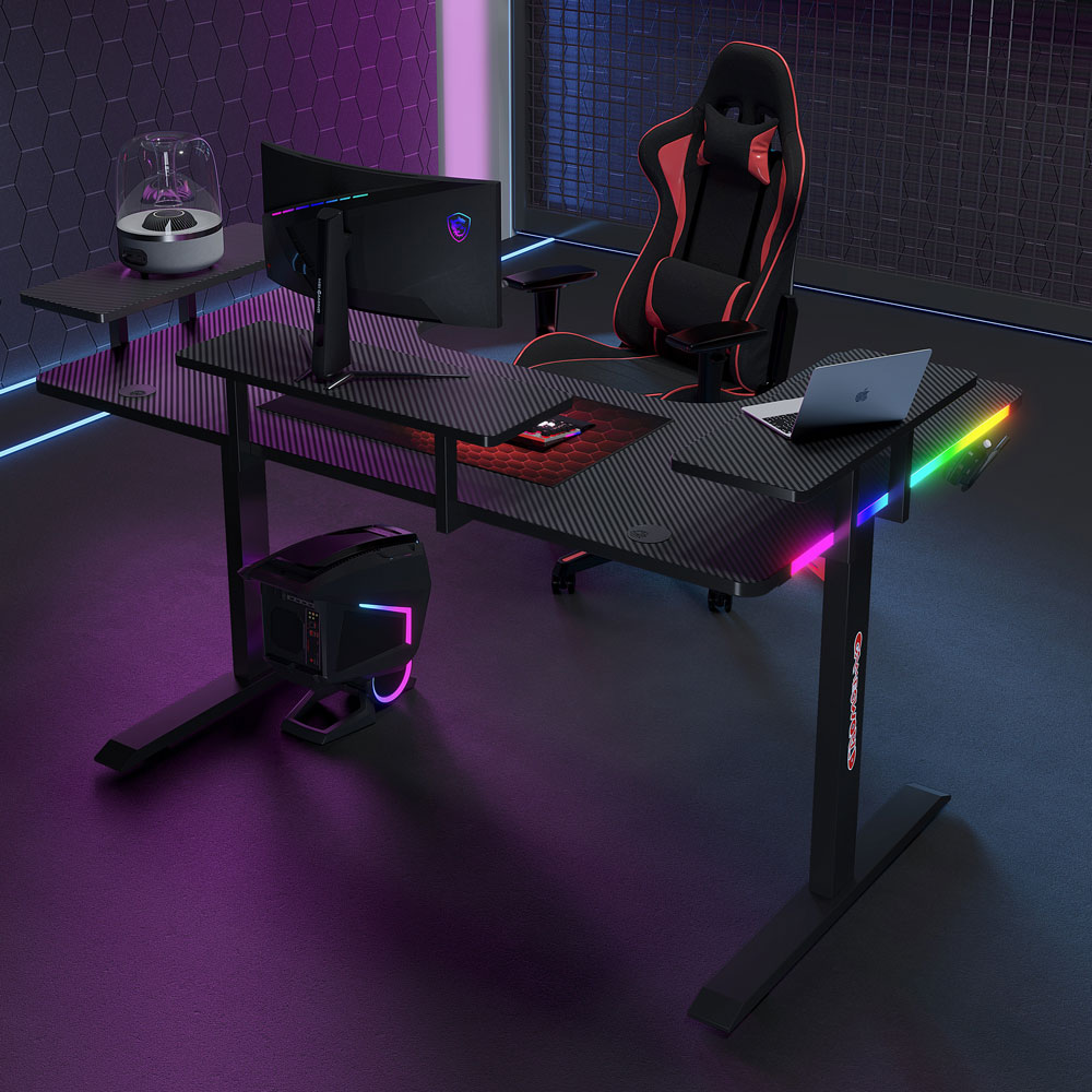Геймърско бюро 5 в 1 включва поставка за чаша, кука за слушалки, RGB осветление, подложка за мишка