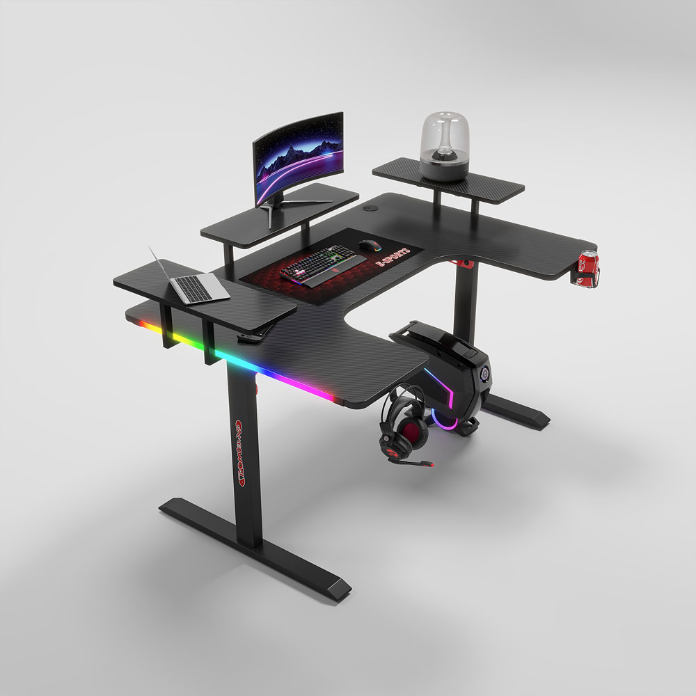 Геймърско бюро No brand P203, 5 в 1, RGB, Черен - 74004